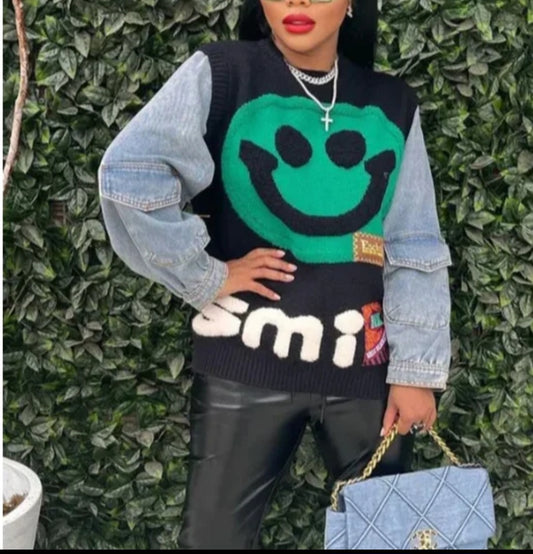 Make Me Smile Denim Sweater-Effortless Style & Comfort