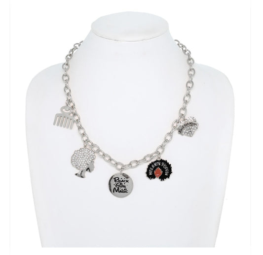 Elegant Diva Multi-Charm Pendant Metal Necklace for Effortless Style & Versatility