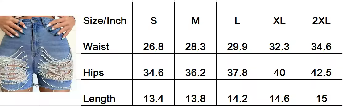 Available in various sizes, the High-Waisted Pearl Chain Ripped Shorts cater to all body types, ensuring that every woman can enjoy a flattering and fashionable look. Pair with your favorite crop top or oversized tee and your go-to sneakers for a chic and trendy outfit. Don’t miss out on this wardrobe must-have that promises both style and comfort.